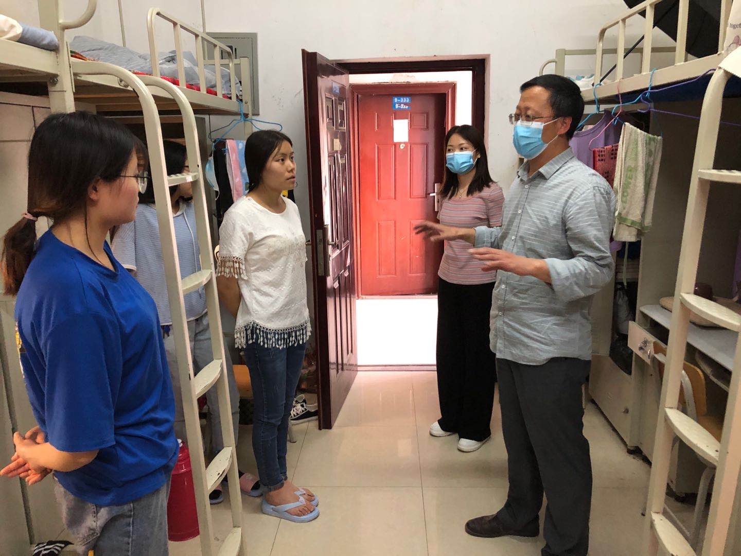 走访过程中,pa电子官方网站党总支书记卢百龙与学生们一起聊生活、问学习,叮嘱同学们在这特殊时期要佩戴好口罩,勤洗手,如实做好自身体温监测和及时上报,保持宿舍卫生清洁、通风,不互相串门,注意个人防护。