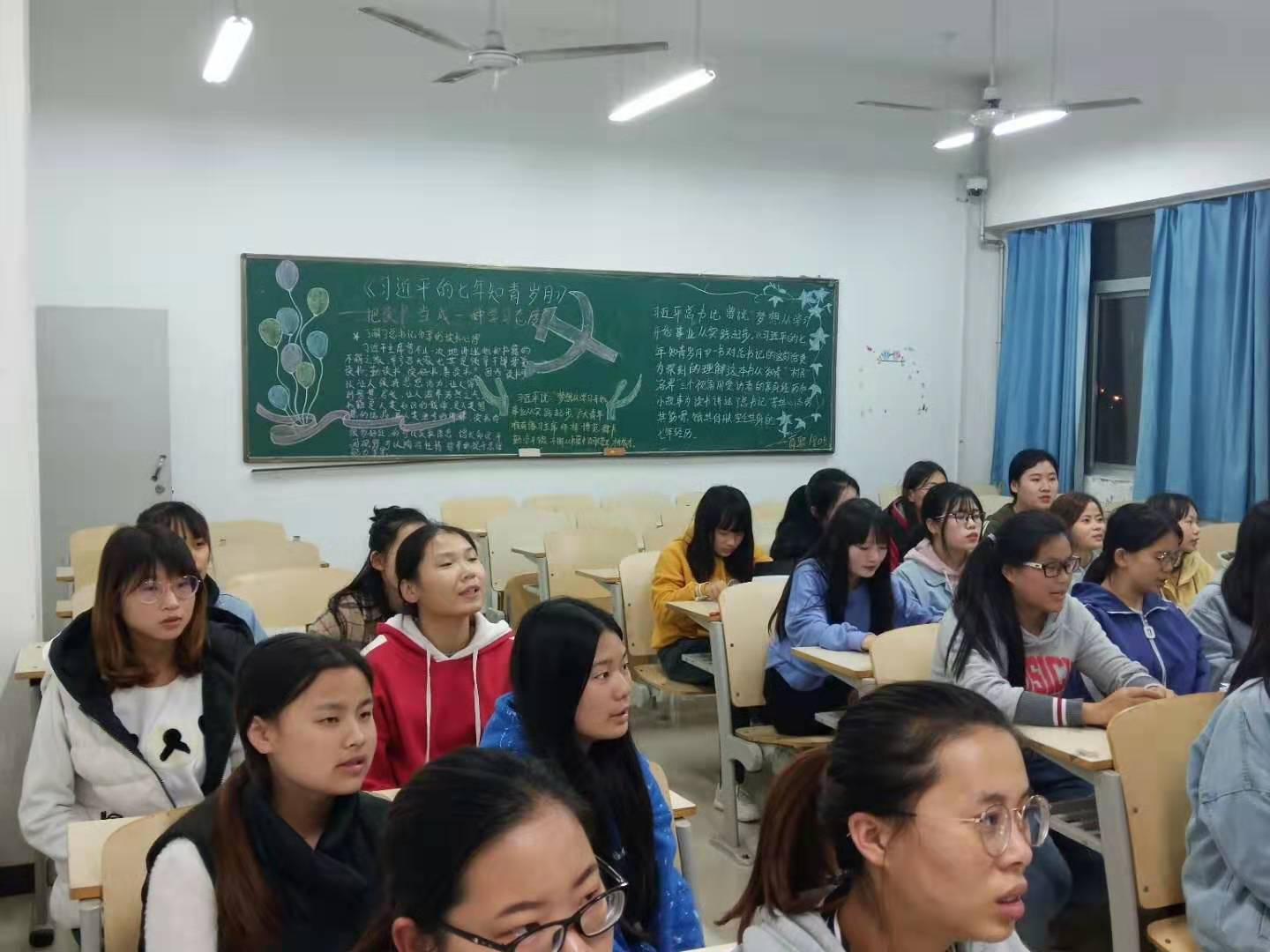 在团课上,各班团支书通过朗读《习近平的七年知青岁月》文章节选,与同学们在朴实的文字中感受习近平总书记在知青时期的艰苦生活和成长历程,学习他矢志不渝的理想追求和吃苦耐劳的优秀品质。习近平总书记用自己的事例,为同学们树立了榜样,激发了大家刻苦学习的态度和艰苦磨炼的精神,成为引领青年筑梦的活教材。