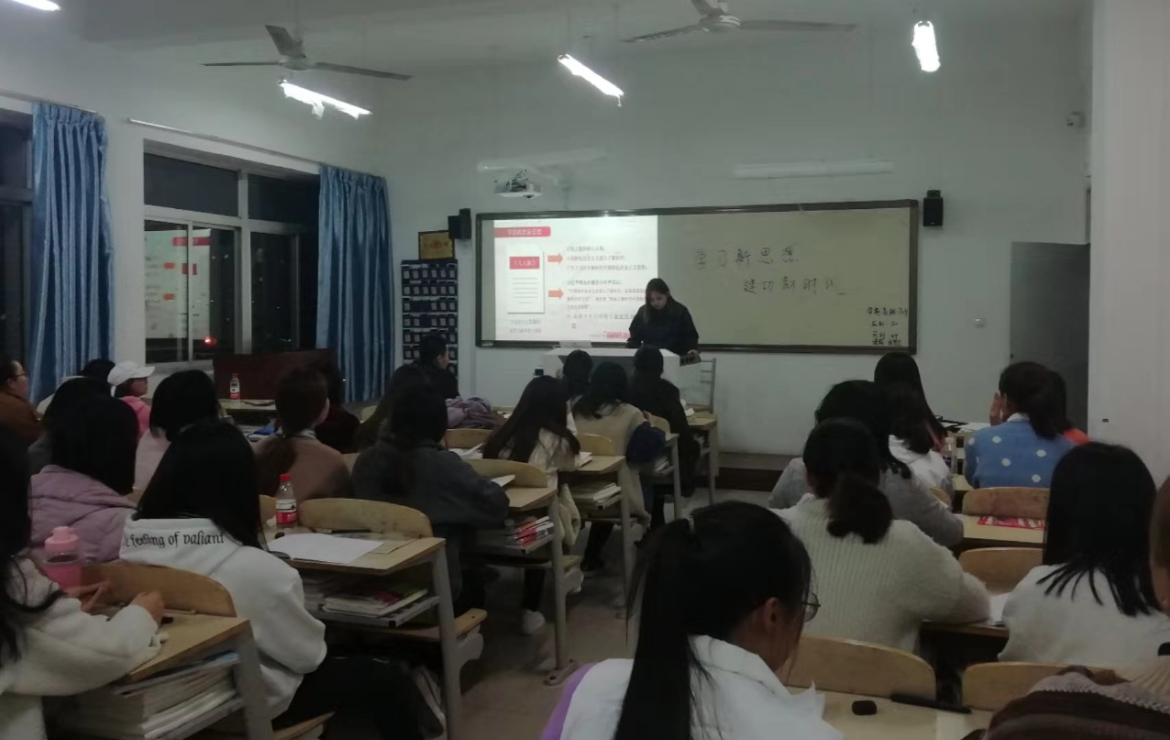本次团课抓住青年一代在新时代下应该有新追求、新梦想这一主题展开讨论。各班首先通过视频,聆听了习近平总书记对于何为新时代的阐述,让同学们牢牢把握新思想的主线和灵魂,深刻领会其精神实质和丰富内涵。随后,同学们相互交流学习心得,并对“新时代下青年应该有怎样学习和生活态度”展开积极的研讨。