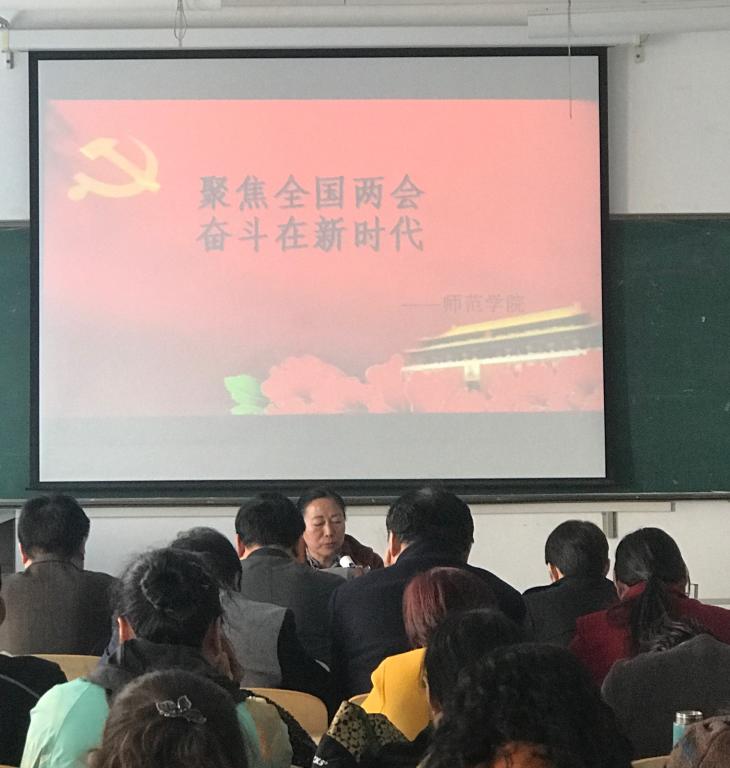 春回大地,万象更新。2018年两会帷幕落下,为了深入领会“两会”精神,3月21日下午,pa电子官方网站组织全体教职工在师范楼305教师认真学习深入领会“两会”精神。