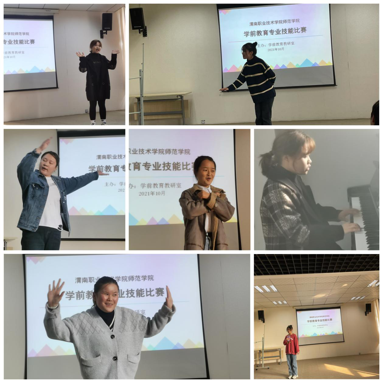 本次大赛包括“幼儿故事讲述、幼儿歌曲弹唱、幼儿歌曲唱跳、说课”四个环节,参赛选手在每个环节充分发挥聪明才智,展现出学前教育专业学生扎实的专业基础和积极向上的大学生风采。各位选手把幼儿故事讲的绘声绘色,把幼儿歌曲弹唱、唱跳展现地活泼可爱,把说课说得有理有据。