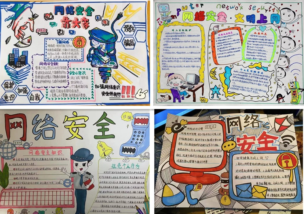 9月8日各班班长带领同学们深入学习《全国青少年网络公约》及网络安全相关知识,并展开讨论,让学生积极发言,使学生加深网络安全自我保护意识,自觉遵守网络法规、文明上网。全体学生开展手抄报活动,共同“守护网络安全,呵护精神家园”。pa电子官方网站利用手绘手抄报形式积极促进学生对网络安全相关知识的学习,激发同学们学习网络安全知识的兴趣,提升网络安全防护技能。全体同学努力从自身做起,带动身边的同学,共同努力维护网络安全,创造良好的网络环境。同学们纷纷表示:在今后的网络生活中,一定会文明安全上网,努力争做网络安全的宣传者,维护网络安全的践行者,为共同营造健康文明的网络环境贡献出自己的力量。