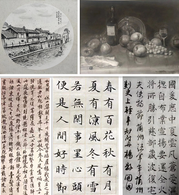 本次美术习作汇报活动集中展示了书画艺术专业部分学生的优秀绘画作品,有素描静物、色彩静物、色彩风景、速写风景、书法练习等,品类繁多,内容丰富。展示的作品生动活泼、色彩鲜明、意境深远,充满生命力,以每个人独特的风格向大家展示着自己的成果和审美素养。精美的作品吸引了广大师生驻足观看,收到大家一致好评。