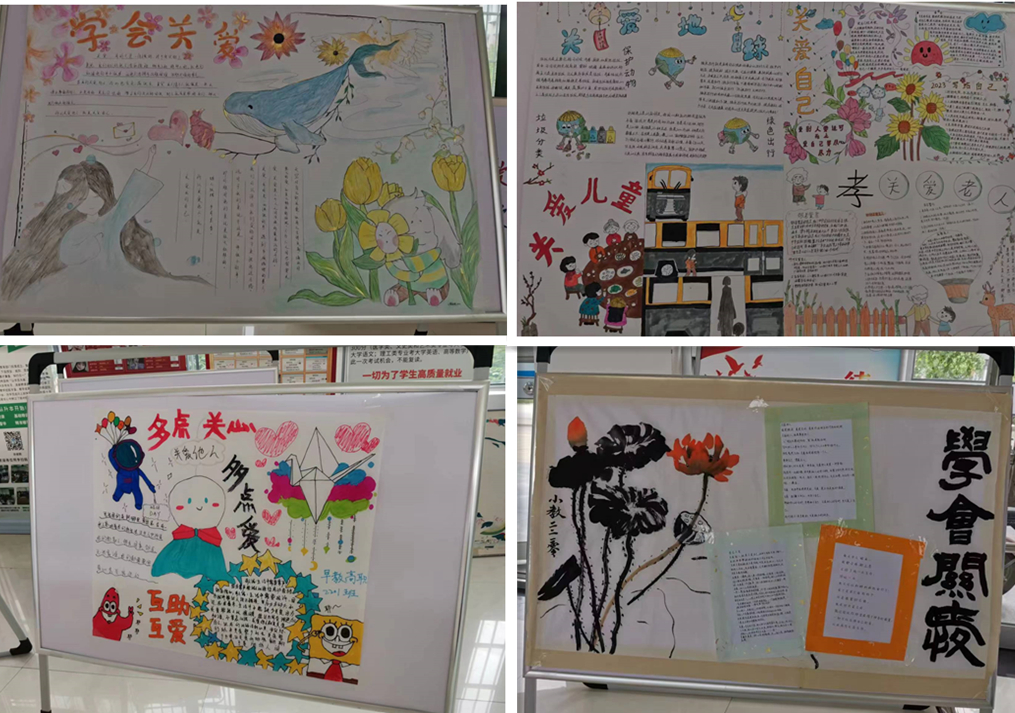 从关爱自己,帮助他人,互相鼓励,学会倾听,学会开导,学会交往等几个方面进行了展板宣传。通过宣传,让学生明白“关爱”这两个平凡的字,如果去真正的领悟它,彻底的看透它,我们便会是一位充满爱心的好人。关爱家人,关爱朋友,这是一个人应有的品质,我们还要学会去感受、去领悟助人为乐的快乐!