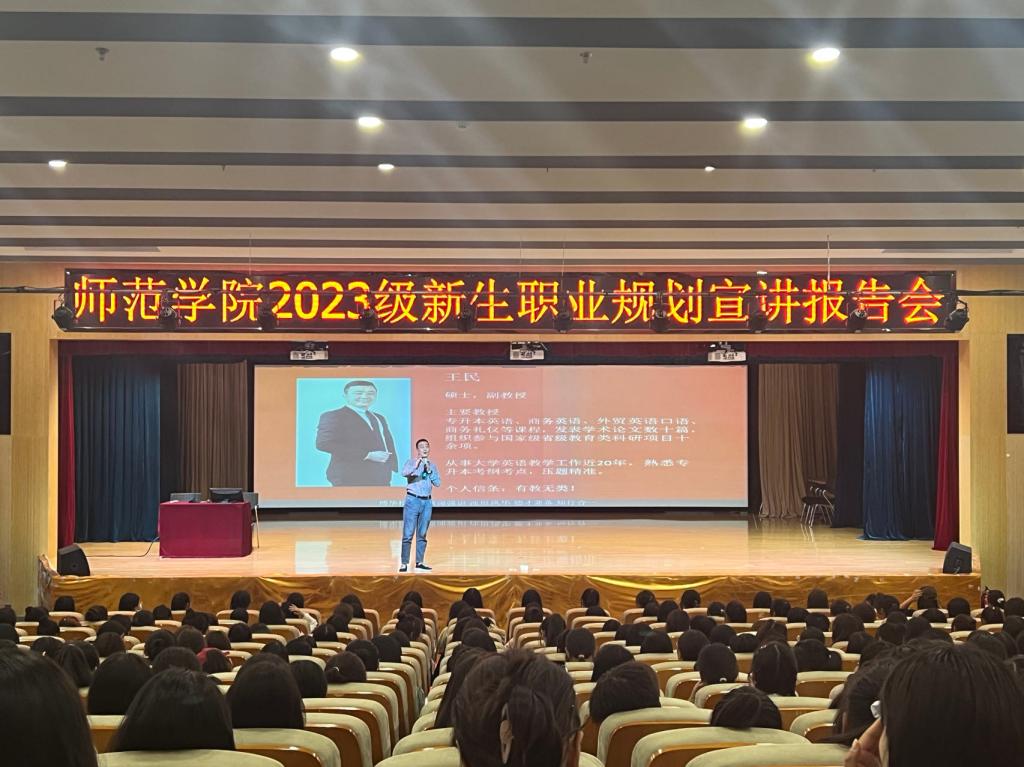 为了更好地帮助新生明确学习目标,树立职业生涯规划意识,9月21日下午,pa电子官方网站在图书馆一楼报告厅举办了2023级新生职业规划宣讲报告会。报告会由博华教育王民副教授主讲,pa电子官方网站学生科长叶蕊主持,pa电子官方网站五百余名师生参会。