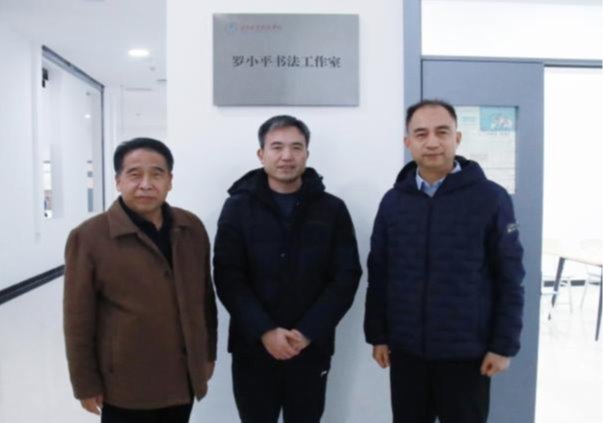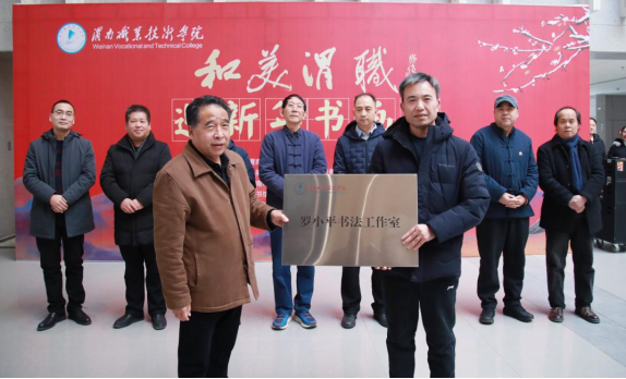华惠民向国家一级美术师、渭南市书协副主席、我院美育中心副主任罗小平授予“罗小平书法工作室”牌匾。