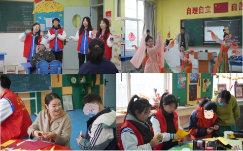 青年志愿者结合专业优势,分组进入班级与孩子们进行互动。分别表演了精彩的舞蹈、歌曲、朗诵,并手把手教他们手工制作。孩子们积极参与其中,现场气氛热烈,充满了欢声笑语。他们天真的笑容和乐观的态度,深深打动了在场的每一位志愿者。
