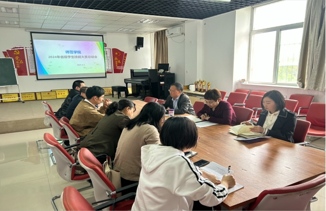 为更好地总结比赛经验,切实达到”以赛促教、以赛促学、以赛促改”的目的,推动教学质量再上新台阶,4月3日下午,pa电子官方网站在师范楼二楼会议室召开2024年省级学生技能大赛小结会。pa电子官方网站院长郭楚伟、副院长于晶汝、教学科科长裴昉、各赛项组长参加会议,会议由裴昉主持。