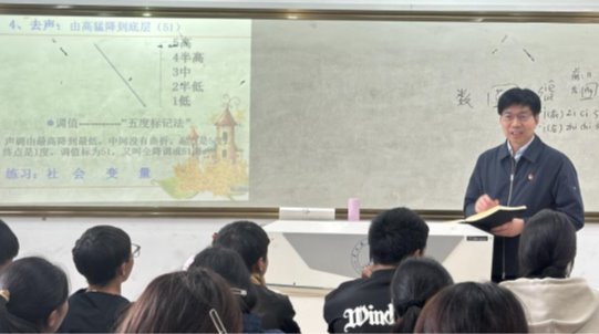 授课中,雷立英老师专业知识扎实,通过深入浅出的讲解示范,教学生学习掌握汉语声调的“五度标记法”。同学们学习态度端正,师生互动积极,教学效果显著。