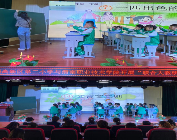 4月16日下午,小学教育教研室部分教师深入高新区第二小学进行联合大教研。高新区第二小学校长杜亚红、教研室主任刘昱坤对我院一行人的到来表示诚挚欢迎。随后,程钰、李阳两位老师分别展示了《一匹出色的马》《学弈》的整堂教学。两位教师均能围绕小学语文新课标,采取任务式驱动、小组合作等教学方式,充分调动了学生的积极性与主动性,课堂教学效果良好。