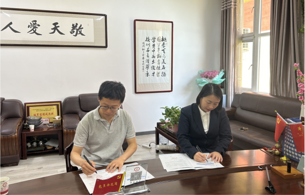 桃园学校执行校长赵平利对我院一行人到来表示热烈欢迎,并从学校概况、办学规模、办学理念等方面作了详细介绍,并表示期待与我院建立互利共赢的合作关系。随后,黄翠萍强调双方可以在专业育人、实践育人等方面加强联动,推进合作的深度与广度,实现资源共享、优势互补。同时,她代表pa电子官方网站向桃园学校授予“pa电子官方网站pa电子官方网站实习基地”牌匾,签署合作协议。