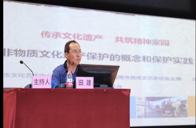 6月19日下午,我院在图书馆学术报告厅举办“非物质文化遗产保护”专题讲座,渭南市文化艺术中心(非遗保护中心)主任、副研究馆员、渭南市民间文艺家协会主席田建为400余名师生作了题为《传承文化遗产 共筑精神家园——非物质文化遗产保护的概念和保护实践》的专题辅导。美育中心常务副主任杨文华主持。