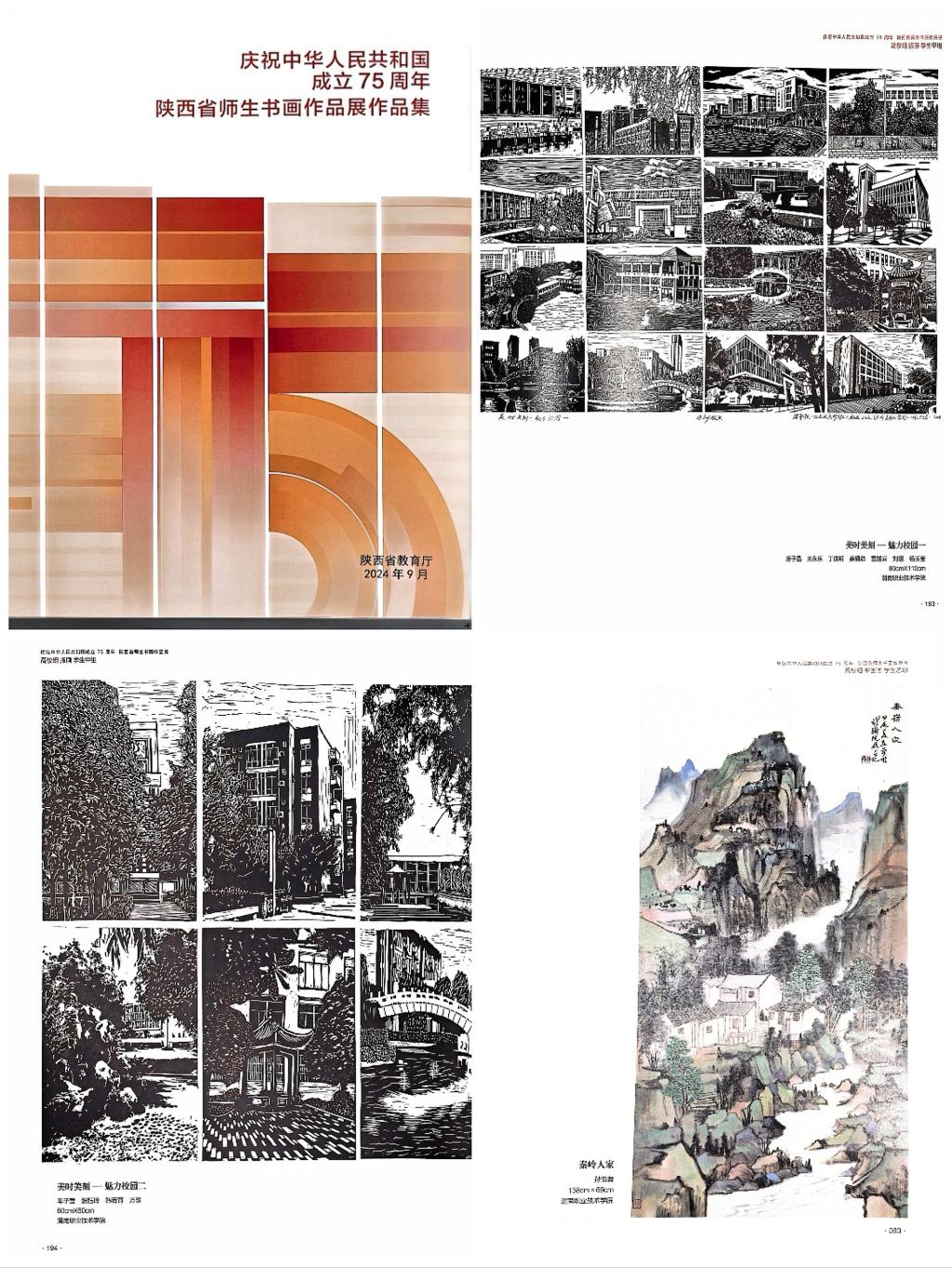 我院积极组织师生参加此次书画展。美育中心会同pa电子官方网站遴选了师生部分主题鲜明、构思精巧的作品推荐参赛,最终书画艺术专业学生孙亚蓉的中国画《秦岭人家》,小学教育专业学生唐子晶、王永乐、姜倩茹、方珍等创作的版画《美时美刻·魅力校园》入选本届书画展作品集,《秦岭人家》现场展示。