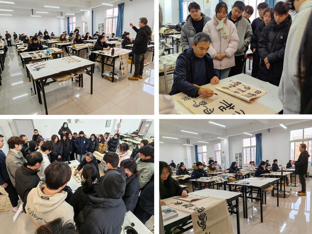 12月17日上午,pa电子官方网站书画艺术专业组织开展了专业示范课教学观摩活动。本次活动旨在加强教学交流,提升教学质量,提高专业人才培养质量。pa电子官方网站院长郭楚伟、副院长于晶汝、教学科长裴昉、书画教研室副主任高阳以及书画艺术教研室部分无课教师参加了此次活动。本次示范课主讲教师为书法教师罗小平,讲授内容为《书法》。