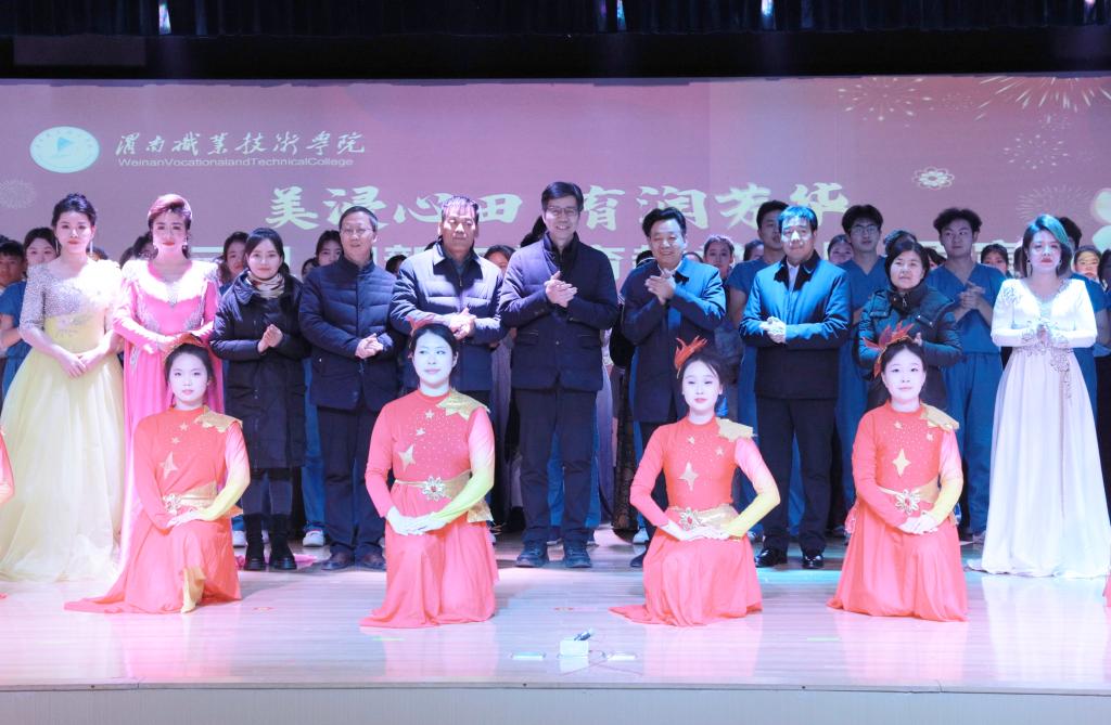 在辞旧迎新的美好时刻,我院于2024年12月26日晚举办了以“美浸心田育润芳华”为主题的“庆元旦•迎新年”美育教学成果展演。学院党委书记陈峰、院长靳华锋、党委副书记王录军、纪委书记张国栋、总会计师吴运胜及各二级学院、部门负责同志和学生代表500余人参加活动。