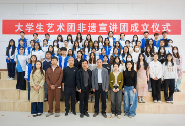 4月9日下午,美育中心在综合楼举行大学生艺术团非遗宣讲团成立仪式。美育中心、宣传统战部、学生处、团委负责同志和学生社团代表参加。仪式由美育中心副主任杨文华主持。