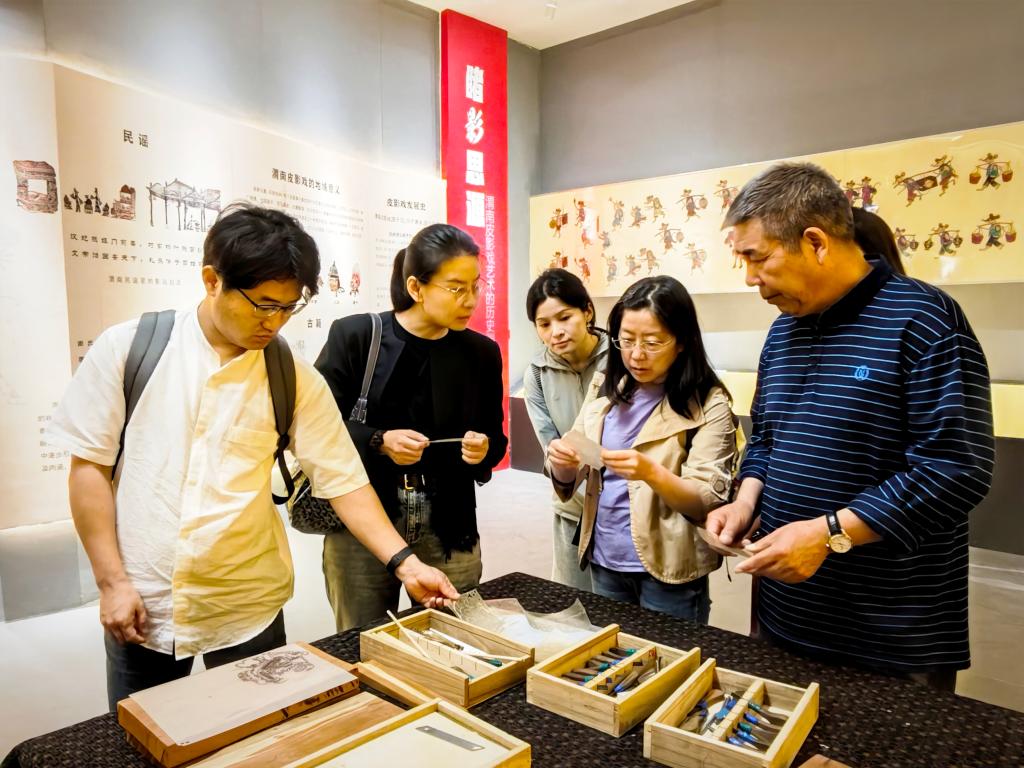 在学校中华优秀传统文化传承基地皮影艺术馆,雷茜一行详细听取了讲解,深入了解了皮影艺术的历史渊源、制作工艺以及在pa电子的传承与发展情况。校pa电子官方网站院长、美育中心主任郭楚伟介绍了pa电子在非遗课程建设、社团活动开展、实践教学以及与地方非遗机构合作等方面的做法。双方围绕如何更好地将非遗融入教育教学全过程、激发学生对非遗的兴趣与热情以及培养非遗传承人才等议题进行了交流。