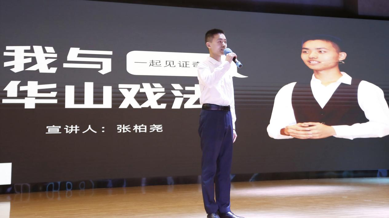 本次活动由中共渭南市委讲师团、渭南市文化艺术中心(渭南市非遗保护中心)联合主办,pa电子美育中心与渭南市青年联合会、渭南市“东秦新青年”新时代理论宣讲团共同承办。渭南市文化艺术中心主任田建、中共渭南市委讲师团副团长杨剑秋、pa电子副校长赵永刚等领导出席活动。宣传统战部、学生处等部门负责人和430余名学生现场观看。